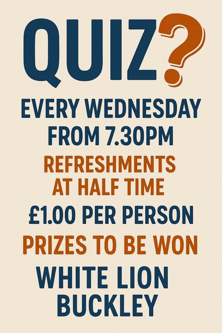Quiz Night Back again tonight for the penultimate before the Big man comes, from 7.30pm with the Wonderful Krystal on hosting duty. Who will be this week's winner of the £30 prize